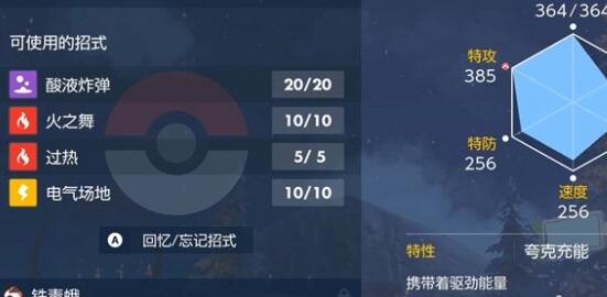 1、铁毒蛾的技能配置非常友好,酸液炸弹无视盾降低特防,火之舞提升特攻,场地防止对面找茬。